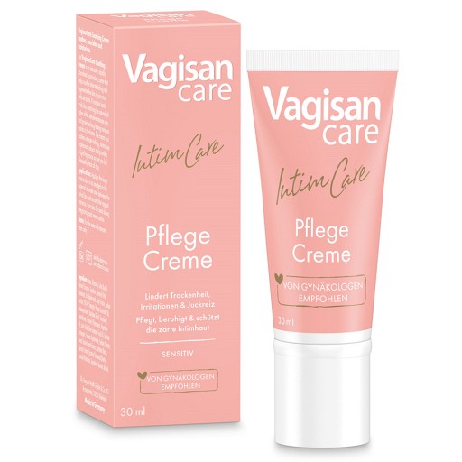 Die VagisanCare Pflege Creme ist eine intensiv wirkende Creme, die schnell einzieht und die gereizte Intimhaut regeneriert und beruhigt. Durch den Zusatz von Milchsäure ist sie an den natürlichen pH-Wert des äußeren Intimbereichs angepasst und spendet dank Hyaluron langanhaltende Feuchtigkeit.