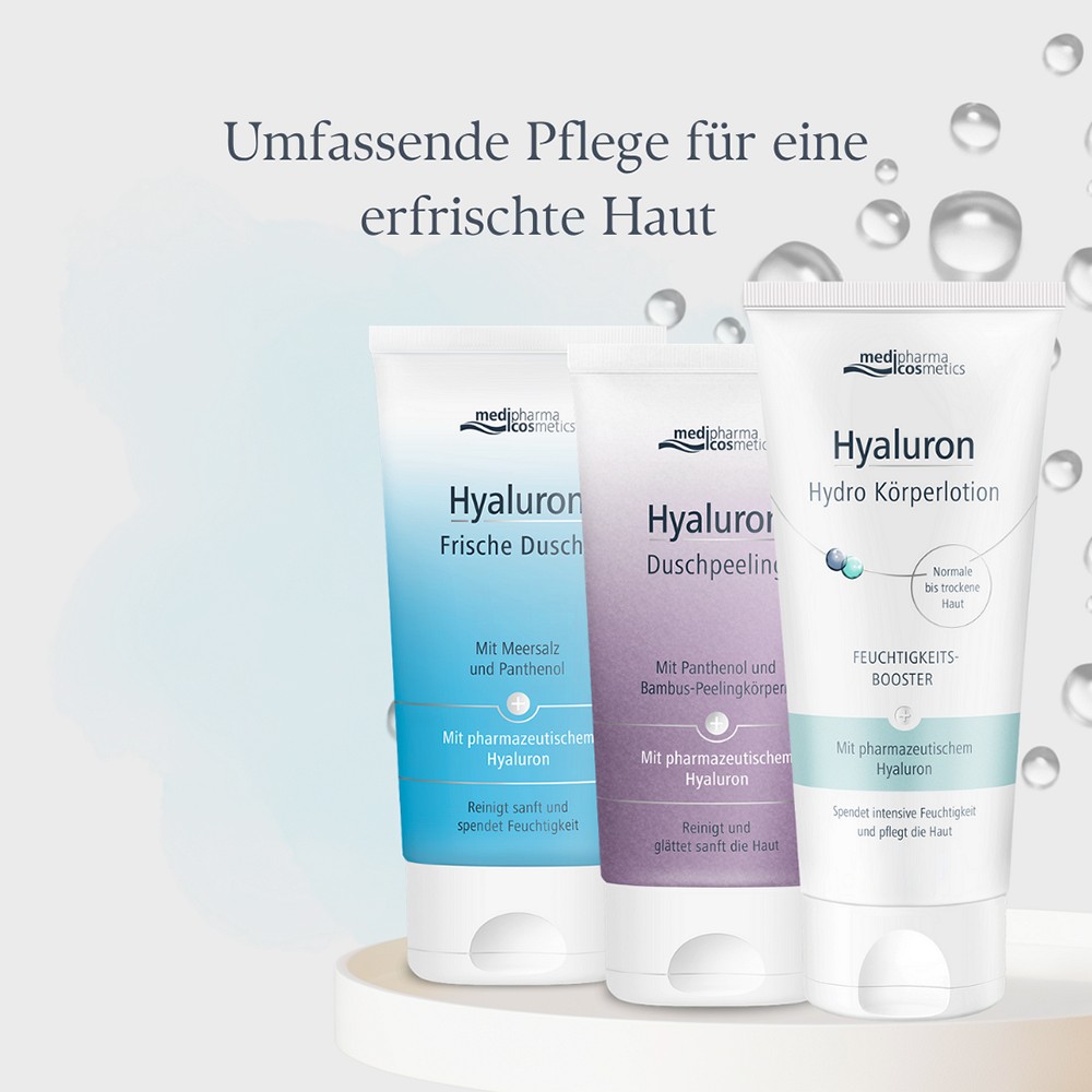 Die medipharma cosmetics Hyaluron frische Dusche: Erfrischung und Pflege in einem Schritt – für ein wohltuendes Duscherlebnis mit jedem Tag.