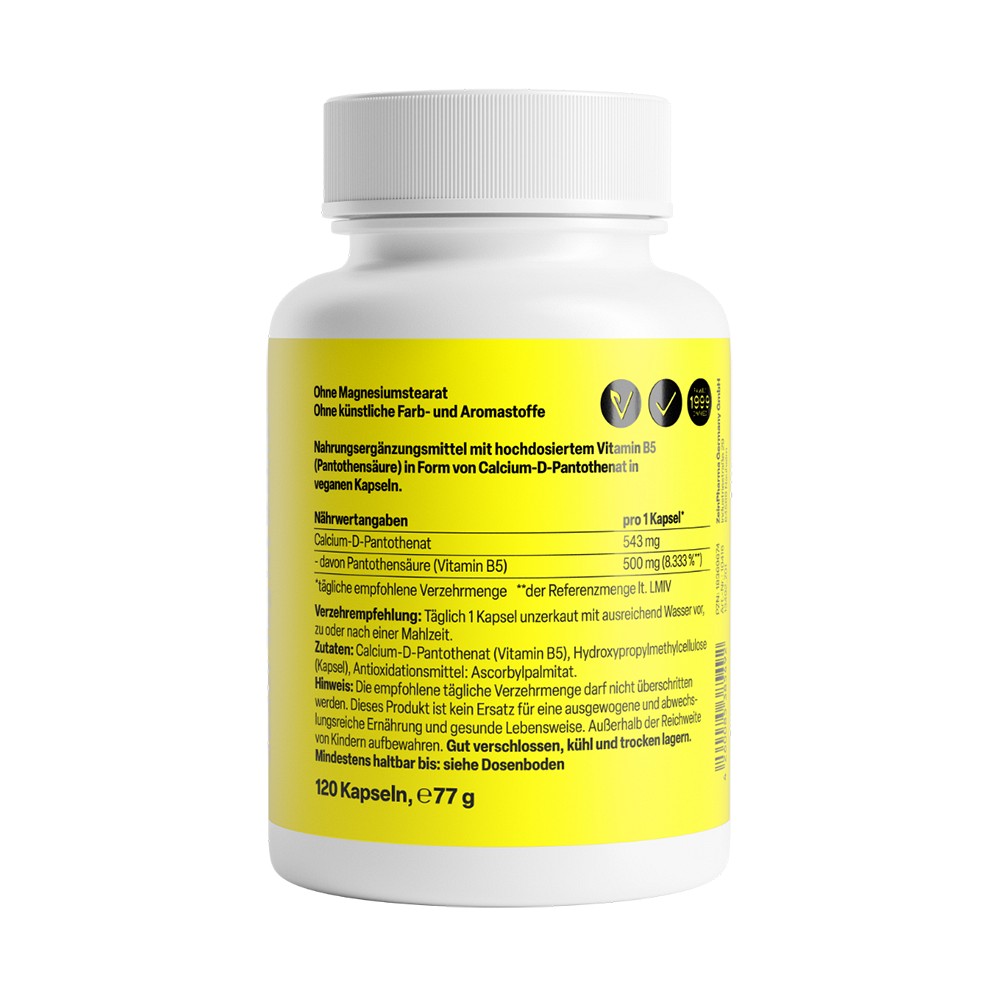 - Hochwertige Inhaltsstoffe: Unsere Vitamin B5 500 mg Kapseln enthalten 100% reine Zutaten