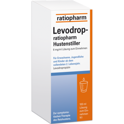 Anwendungsgebiete: Levodrop-ratiopharm Hustenstiller wird angewendet zur symptomatischen Therapie des Reizhustens (unproduktivem Husten). Levodrop-ratiopharm Hustenstiller wird angewendet bei Erwachsenen, Jugendlichen und Kindern ab dem vollendeten 2. Lebensjahr.