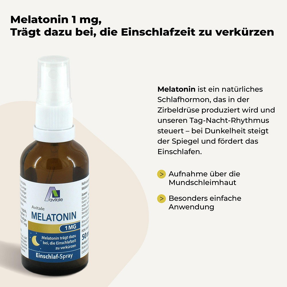Melatonin ist ein Neurohormon und wird vom Organismus in der Zirbeldrüse im Gehirn produziert. Mit einsetzender Dunkelheit wird das „Schlafhormon“ verstärkt hergestellt und fördert so das Einschlafen. Melatonin steuert einen gesunden Schlafrhythmus und regelt sozusagen die „innere Uhr“.
