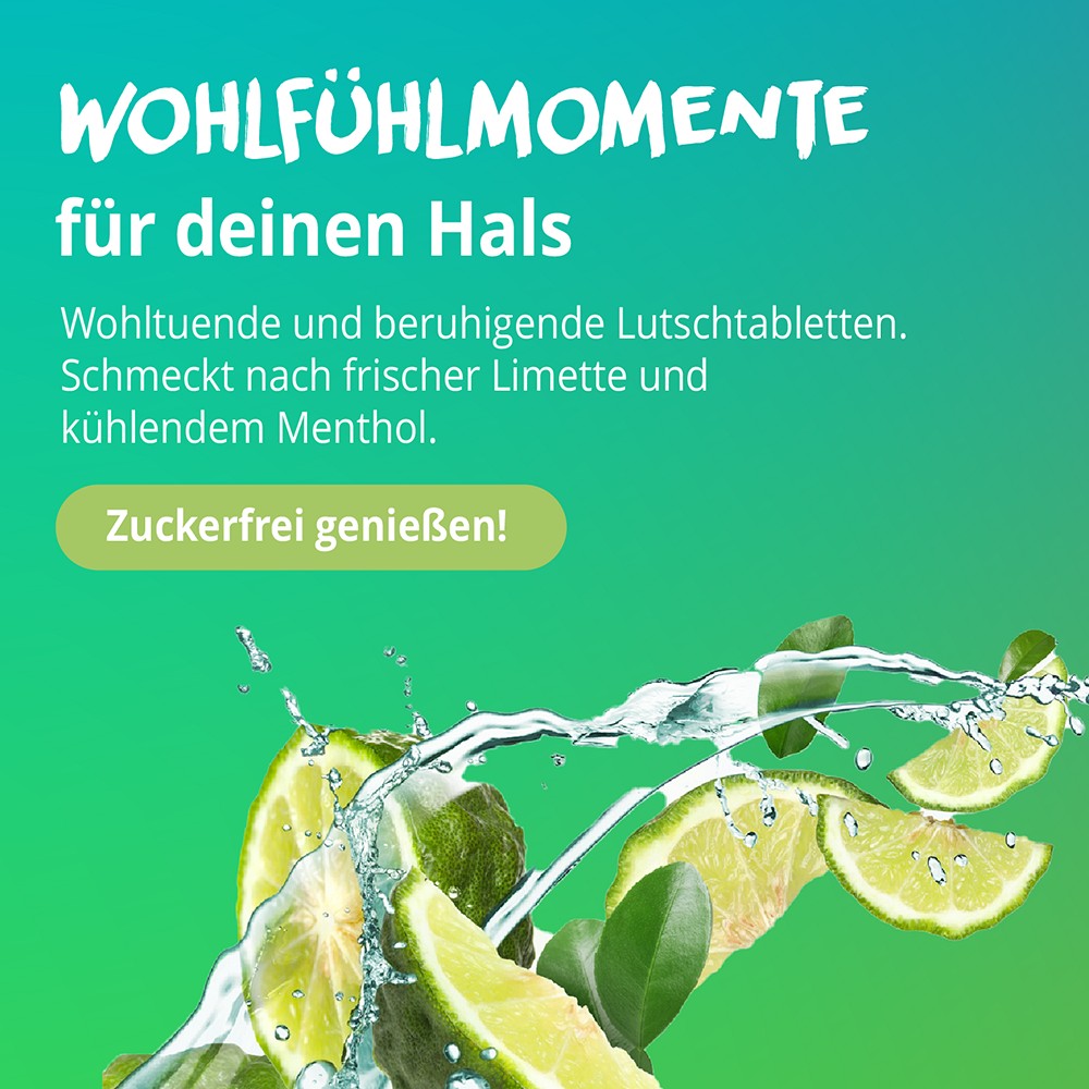 Wenn sich die Hals- und Rachenschleimhaut trocken anfühlt, wird das Lutschen von befeuchtenden und kühlenden Lutschtabletten als angenehm empfunden. Das Lutschen regt den Speichelfluss an und führt so zu einer stärkeren Befeuchtung der Schleimhäute. Das enthaltene Mentholaroma entfaltet dabei einen kühlenden Effekt.Hinweise: