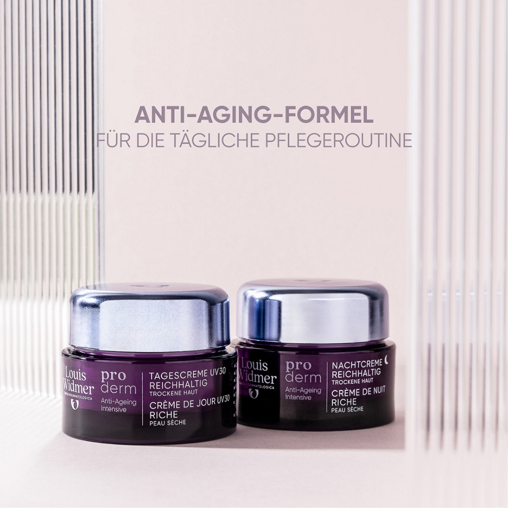 Die proderm Tagescreme UV 30 Reichhaltig wird als Tagepflege für trockene Haut verwendet – ideal für die reife Haut über 30. Nach der Reinigung auf Gesicht auftragen. Augenpartie aussparen.Als wirksame Ergänzung der Tagespflege kann vorgängig das proderm Serum Extrait Liposomal als Basis-Tiefenkonzentrat angewendet werden.