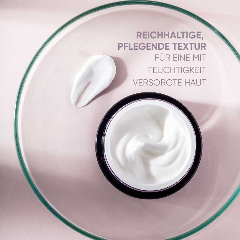 - Die reichhaltige Textur mit hoher Wirkstoff-Konzentration nährt, regeneriert und befeuchtet das Hautgewebe intensiv.