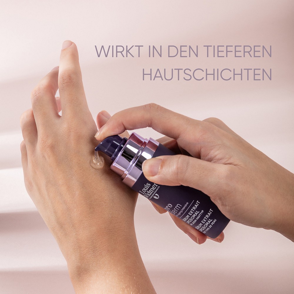Das proderm Serum Extrait Liposomal wird täglich ein- bis zweimal angewendet, nach der Hautreinigung und vor der Tages- oder Nachtcreme. Sparsam anwenden: 1 – 2 Dosierungen genügen für das ganze Gesicht. Bei Bedarf eine zusätzliche Dosierung für den Hals und /oder das Dekolleté anwenden.Das proderm Extrait Liposomal regeneriert und befeuchtet. Es kann die pflegenden Eigenschaften der Tages- oder Nachtcreme nicht ersetzen. Diese Pflegepräparate sind nach wie vor notwendig für eine optimal wirksame Hautpflege.