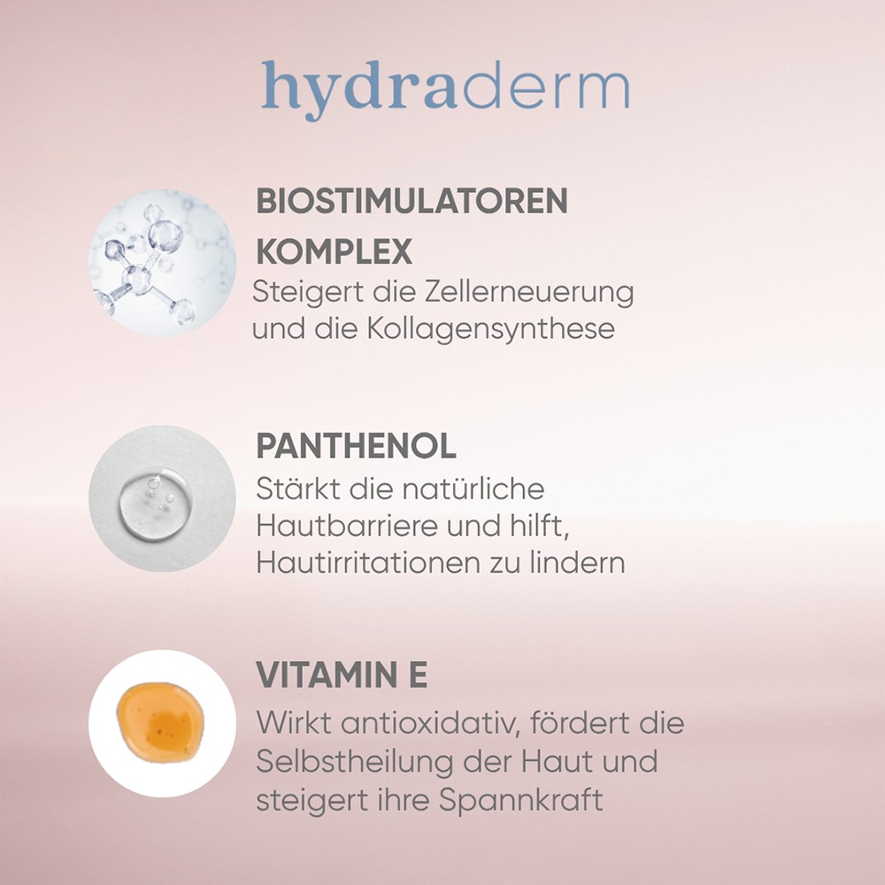 - Hyaluronsäure erhöht das Wasserbindevermögen der Haut und befeuchtet intensiv