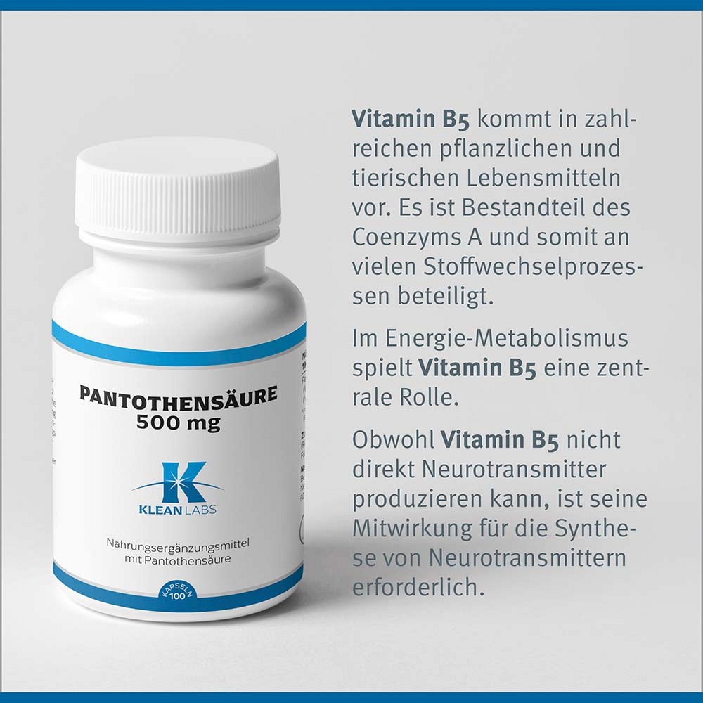 PANTOTHENSÄURE B5 500 mg KLEAN LABS Kapseln 100 St