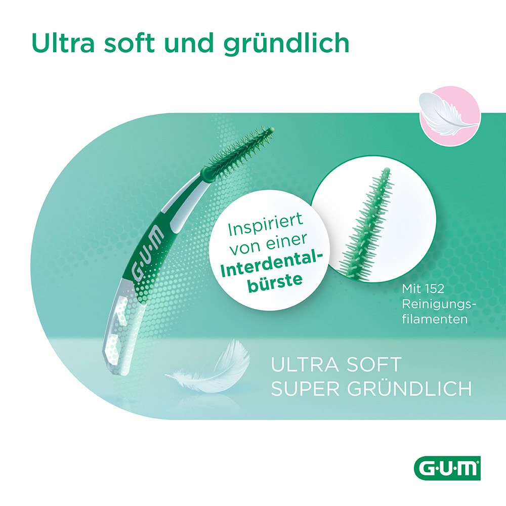 Erhältlich in 3 Größen und damit auch passend für enge Zahnzwischenräume. Ultraweich und damit perfekt geeignet für die Reinigung von empfindlichen Zähnen und Zahnfleisch. Auch für Brücken oder kieferorthopädische Apparaturen zu empfehlen.