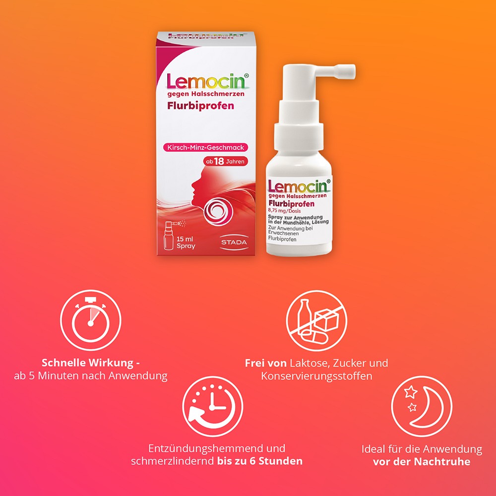 Lemocin® gegen Halsschmerzen Flurbiprofen 8,75 mg/Dosis Spray zur Anwendung in der Mundhöhle, Lösung