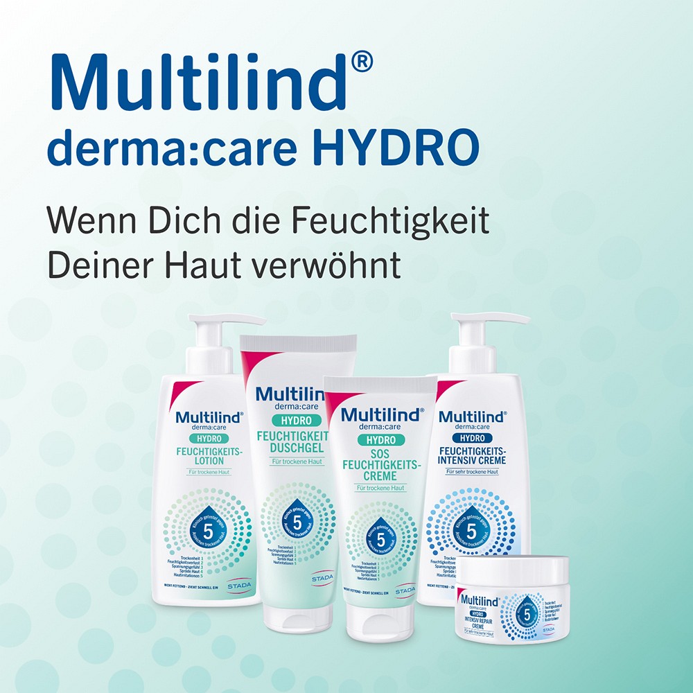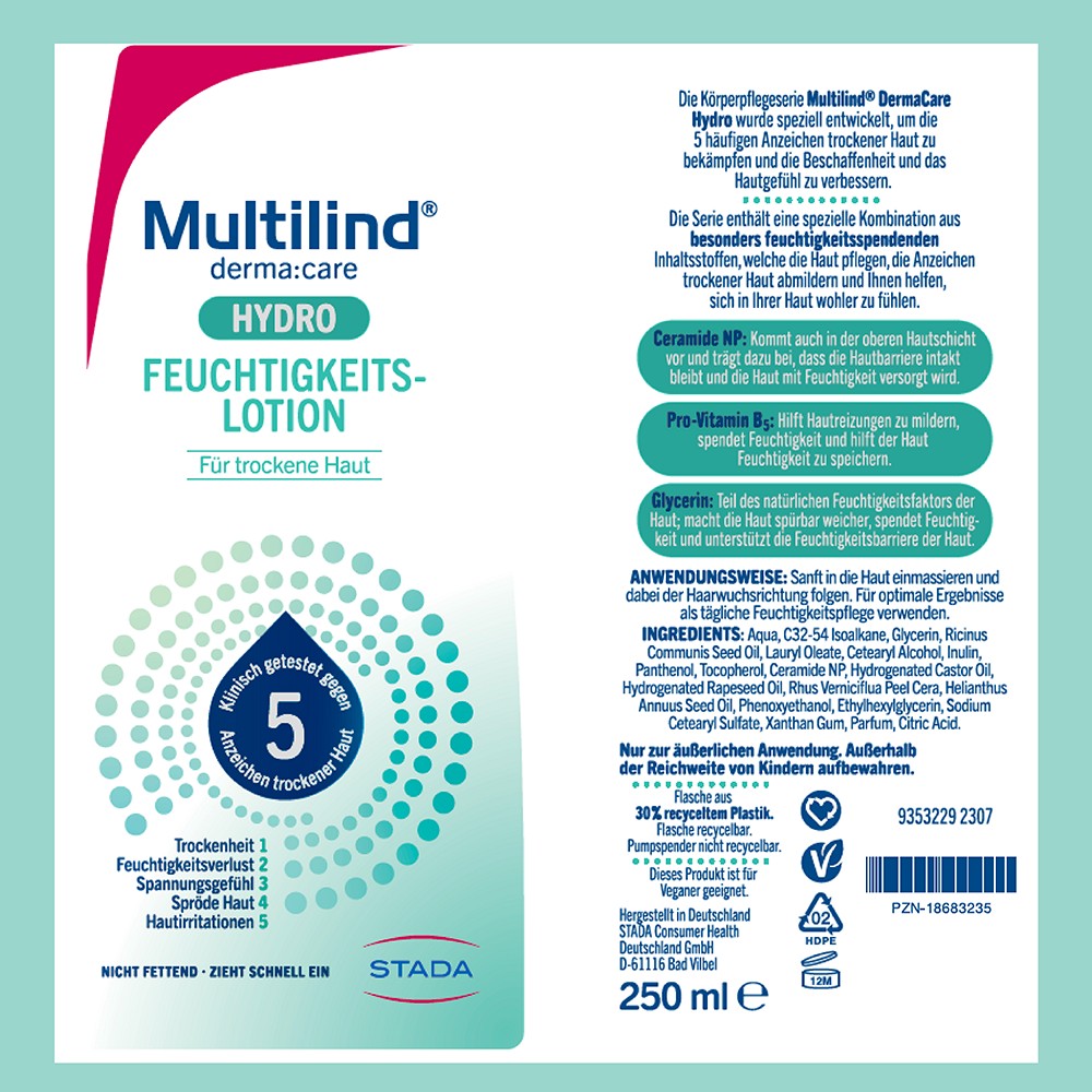 MULTILIND DERMA:CARE HYDRO Feuchtigkeits-Lotion sorgt für sofortige und langanhaltende Feuchtigkeit bei der täglichen Pflege trockener Haut.