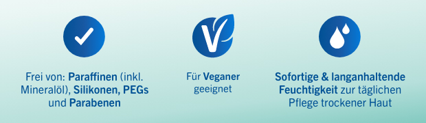 - Klinisch gestestet gegen die 5 Anzeichen trockener Haut: Trockenheit, Feuchtigkeitsverlust, Spannungsgefühl, Spröde Haut, Hautirritationen