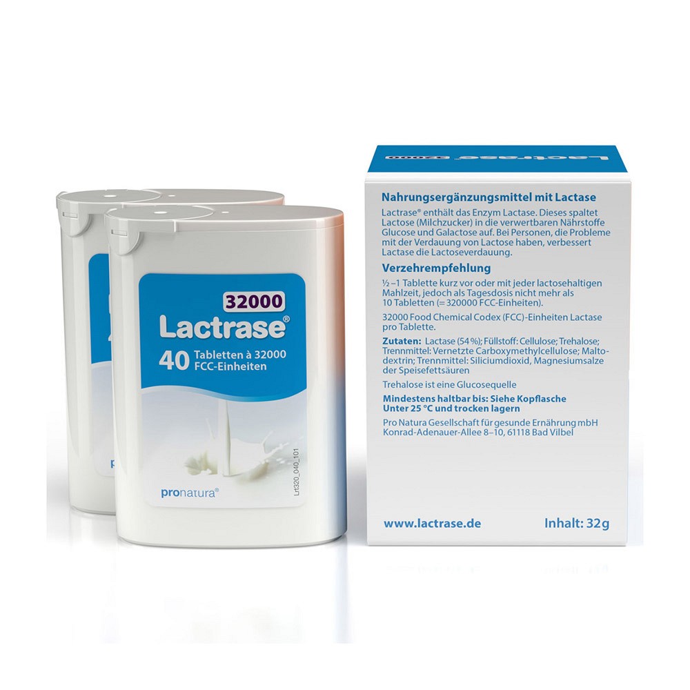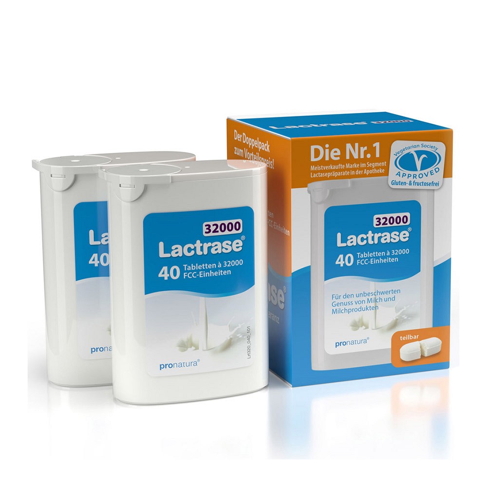Lactrase 32000 unterstützt mit seiner millionenfach bewährten Sofortwirkung die Verdauung von Lactose (Milchzucker) und ermöglicht somit den Genuss von Milchprodukten. Das in den Tabletten enthaltene Enzym Lactase ersetzt die bei Lactoseunverträglichkeit fehlende körpereigene Lactase und spaltet die Lactose in ihre leicht verwertbaren Bestandteile Glucose und Galactose auf. So wird der Genuss von Eisbechern, Cremesuppen und Joghurts wieder möglich.