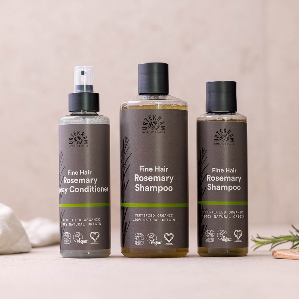 Das würzig-frisch duftende Rosemary Shampoo schenkt feinem Haar neue Spannkraft. Pflanzliche Tenside reinigen Haar und Kopfhaut sanft. Vitalisierendes Bio-Rosmarinöl hilft, das Haar von der Wurzel bis in die Spitzen zu stärken, während Bio-Aloe Vera, Squalen und Glycerin Feuchtigkeit spenden.