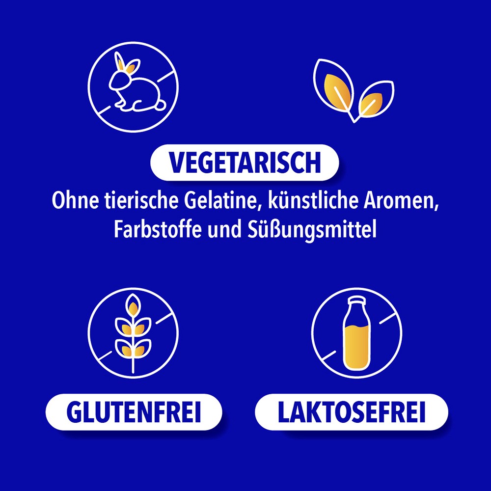 Bion3® Energy1 Weichgummis sind vegetarisch, gluten- und laktosefrei und wurden ohne tierische Gelatine und künstliche Aromen, Farbstoffe und Süßungsmittel hergestellt.