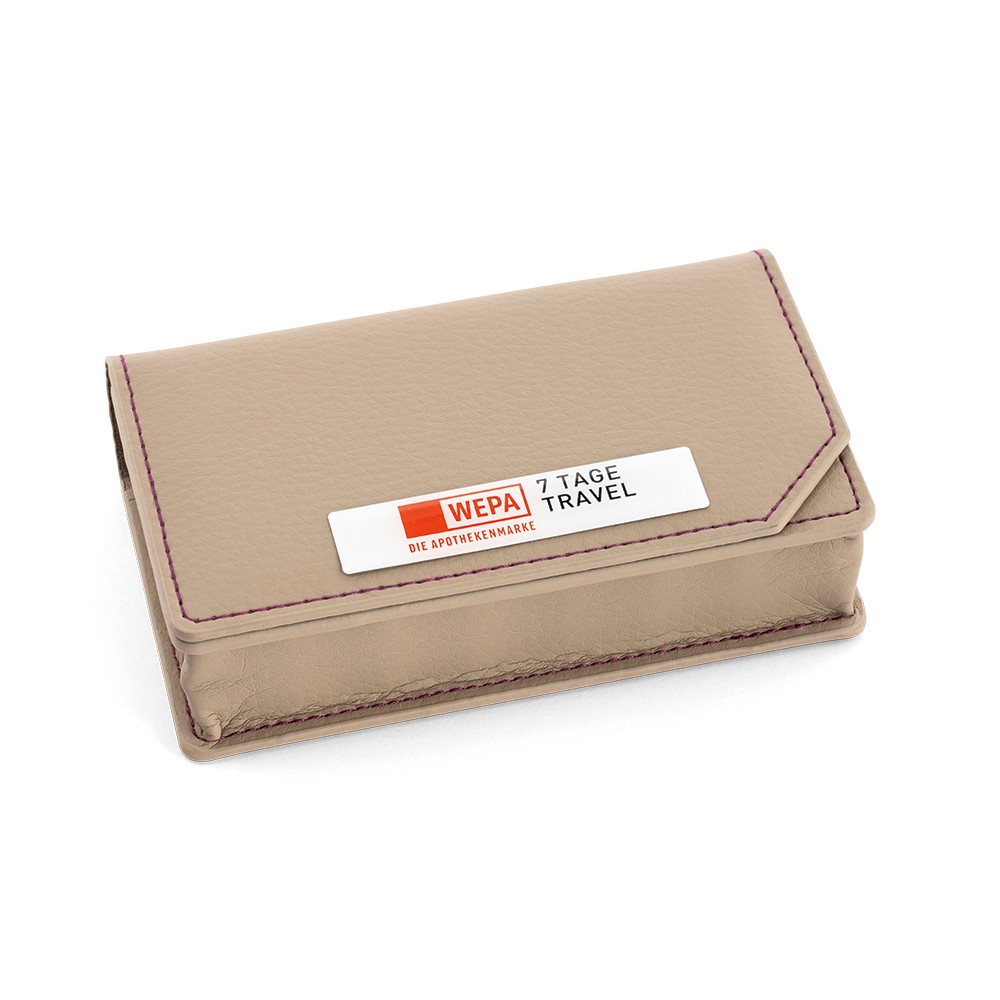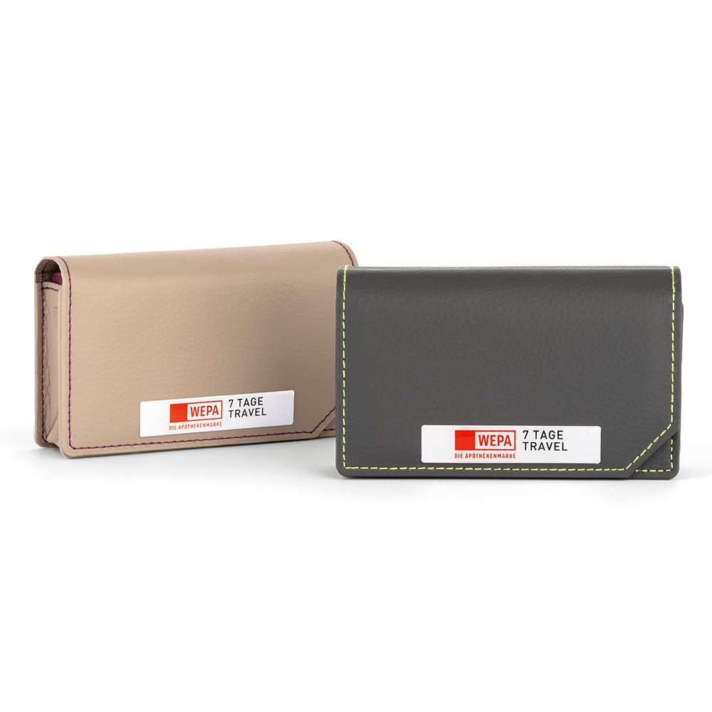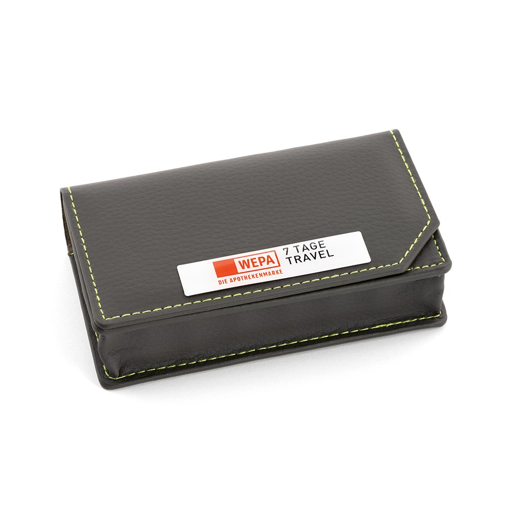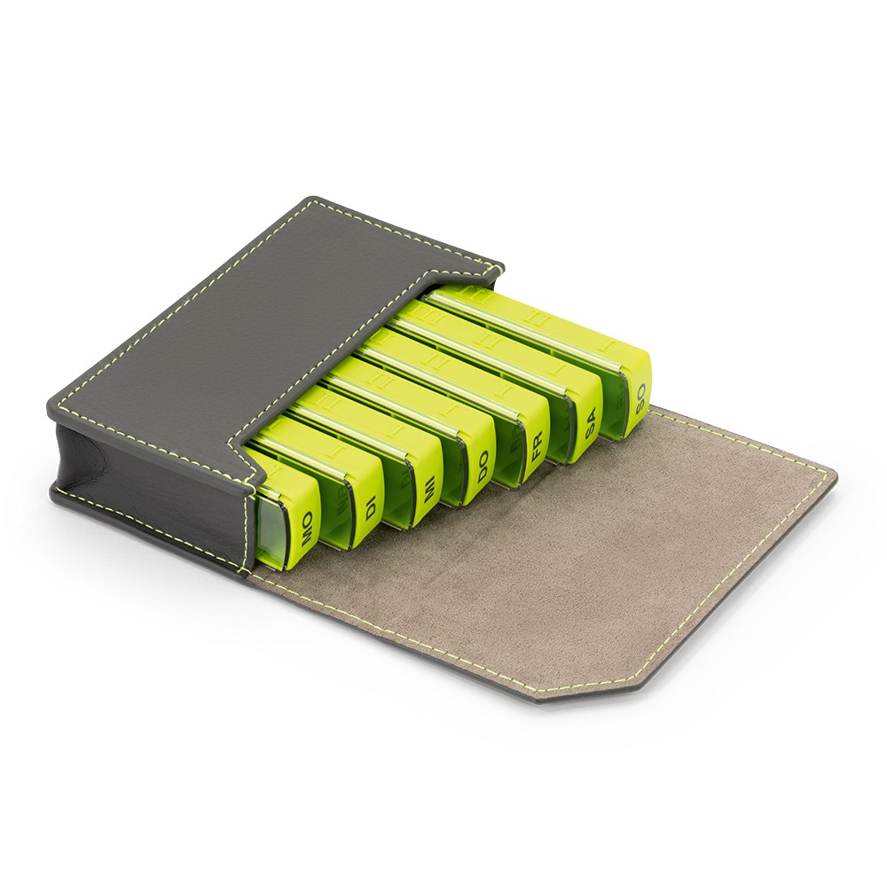 - 1 Woche mit 7 einzelnen Tagesboxen Mini für jeden Wochentag in einem praktischen Lederetui