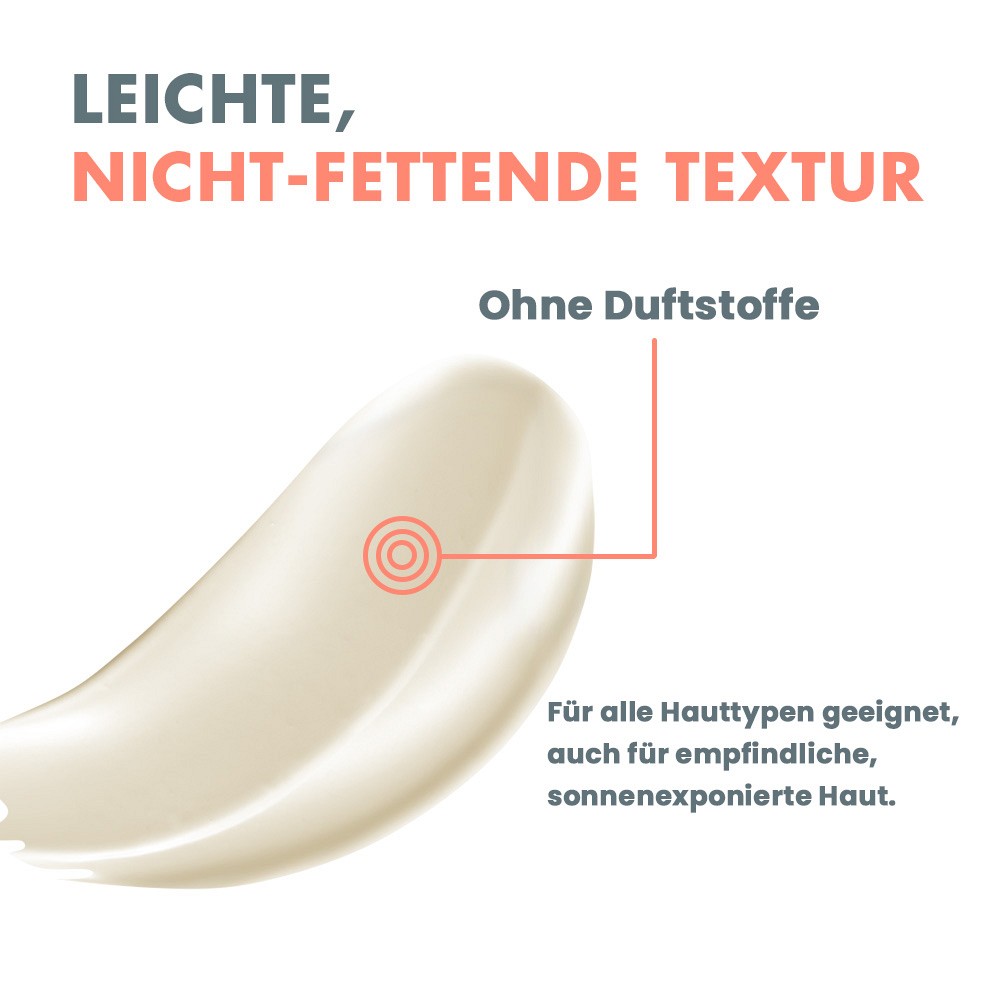 Bei intensivem oder längerem Aufenthalt in der Sonne zusätzlich ein Ihrem Hauttyp angepasstes Sonnenschutzprodukt auftragen, z. B. Avène Ultra Fluid Invisible LSF 50+.