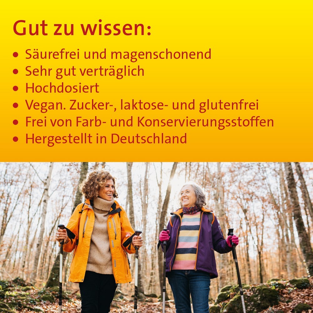 Vitamin C spielt eine entscheidende Rolle in zahlreichen lebenswichtigen Prozessen im Körper. Zum Beispiel ist es essenziel für ein gesundes Immunsystem. Es liegt hochkonzentriert in den weißen Blutkörperchen vor, die Erreger wie Viren und Bakterien bekämpfen. Es schützt Immunzellen vor Schäden durch oxidativen Stress. Auch beim Sport oder bei intensiver körperlicher Arbeit trägt es zu einer normalen Immunfunktion bei.