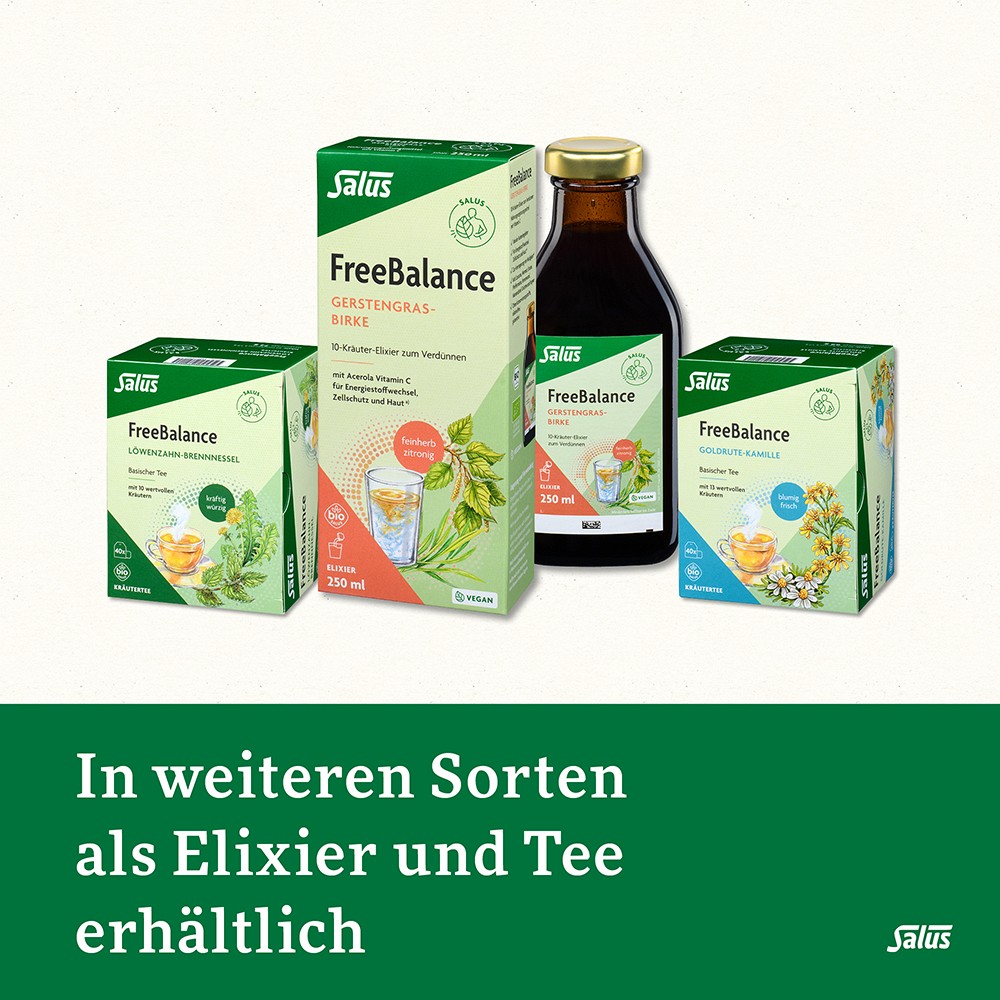 Entdecken Sie zum Verdünnen auch das FreeBalance Gerstengras-Birke 10-Kräuter-Elixier mit zitro-nig-feinherbem Geschmack und die FreeBalance Kräutertees in verschiedenen Sorten - für Ihr allge-meines Wohlbefinden und eine entspannte Pause zwischendurch.