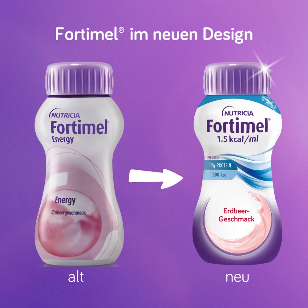 - Die Fortimel® 1.5 kcal Trinkmahlzeit mit Erdbeergeschmack bietet eine optimale Möglichkeit, alle wichtigen Nährstoffe zu erhalten