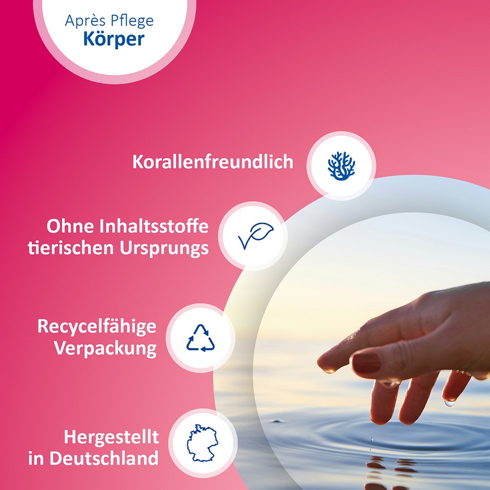 Nach dem Sonnenbaden ist es wichtig, die sonnengestresste Haut optimal zu pflegen und ihre Feuchtigkeitsspeicher aufzufüllen.