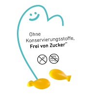 Die Weichgelatine-Kapseln haben die Form lustiger, kleiner Fische und sind sehr leicht zu kauen. Falls Ihr Kind diese Kapsel nicht kauen möchte, so kann man die kleine „Flosse“ abdrehen und das Öl zum Beispiel über den Joghurt geben. Das Öl schmeckt lecker nach Orange und die Kapseln werden von den Kindern sehr gerne gekaut.
