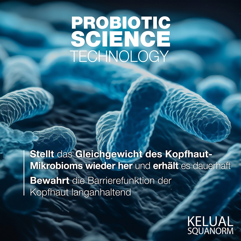 Die feuchtigkeitsspendende Formulierung von KELUAL SQUANORM Kur-Shampoo Trockene Schuppen setzt auf wirksame Aktivstoffe. Die PROBIOTIC SCIENCE TECHNOLOGY ahmt die langanhaltende Wirkung von Probiotika effektiv nach und wirkt sofort gegen Schuppen.- Pirocton Olamin: Begrenzt die übermäßige Vermehrung die schlechten Hefepilze des Mikrobioms (Malassezia).