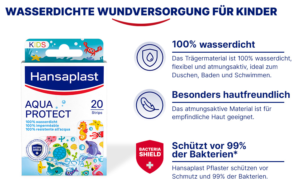 - Schützt vor 99% der Bakterien: Hansaplast Pflaster schützen vor Schmutz und 99% der Bakterien.