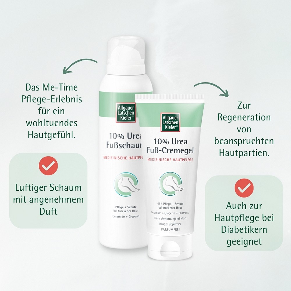 Das Allgäuer Latschenkiefer 10% Urea Fuß-Cremegel mit seiner leichten und erfrischenden Formel bietet eine intensiv feuchtigkeitsspendende Pflege, die die Haut spürbar geschmeidig macht und vor Austrocknung schützt.