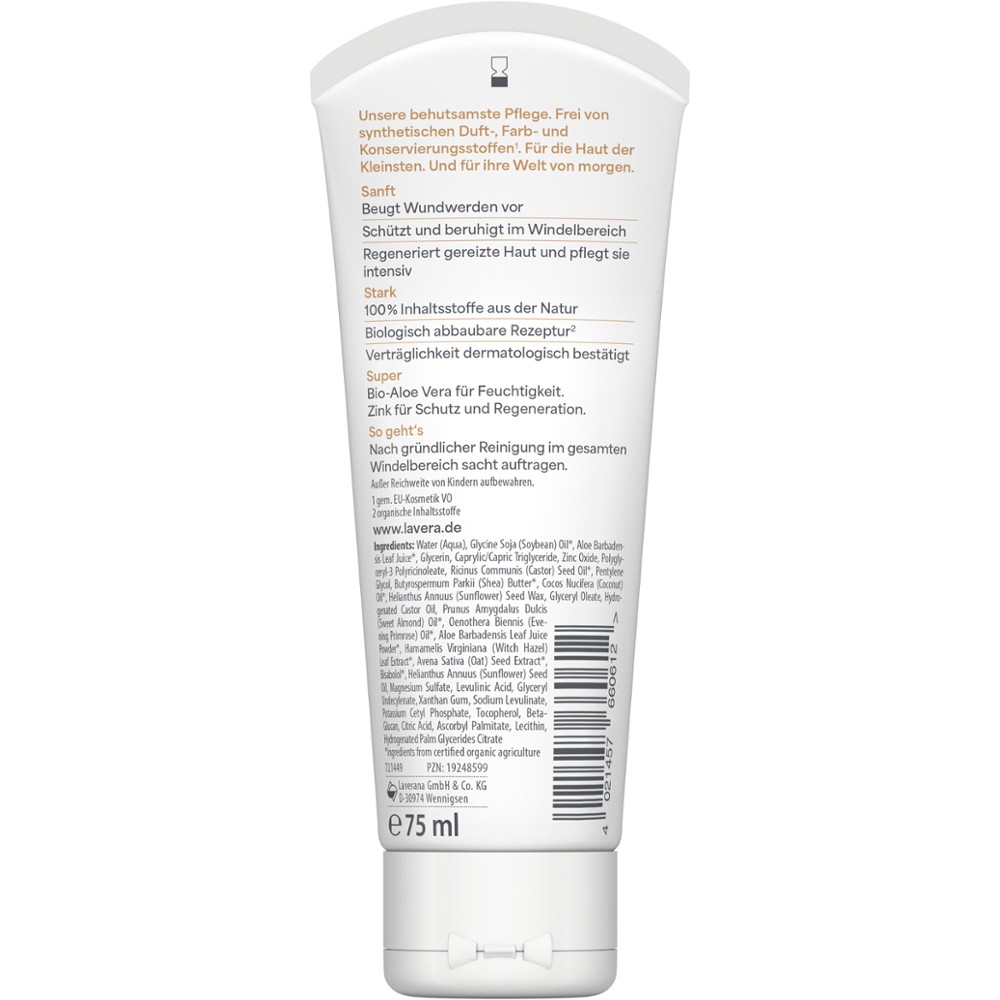 Water (Aqua), Glycine Soja (Soybean) Oil*, Aloe Barbadensis Leaf Juice*, Glycerin, Caprylic/Capric Triglyceride, Zinc Oxide, Polyglyceryl-3 Polyricinoleate, Ricinus Communis (Castor) Seed Oil*, Pentylene Glycol, Butyrospermum Parkii (Shea) Butter*, Cocos Nucifera (Coconut) Oil*, Helianthus Annuus (Sunflower) Seed Wax, Glyceryl Oleate, Hydrogenated Castor Oil, Prunus Amygdalus Dulcis (Sweet Almond) Oil*, Oenothera Biennis (Evening Primrose) Oil*, Aloe Barbadensis Leaf Juice Powder*, Hamamelis Virginiana (Witch Hazel) Leaf Extract*, Avena Sativa (Oat) Seed Extract*, Bisabolol*, Helianthus Annuus (Sunflower) Seed Oil, Magnesium Sulfate, Levulinic Acid, Glyceryl Undecylenate, Xanthan Gum, Sodium Levulinate, Potassium Cetyl Phosphate, Tocopherol, Beta-Glucan, Citric Acid, Ascorbyl Palmitate, Lecithin, Hydrogenated Palm Glycerides Citrate* Rohstoffe aus kontrolliert biologischem Anbau