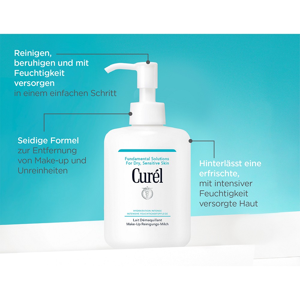 Curél Make-Up Reinigungs-Milch entfernt Make-up mühelos, sanft und effektiv, spendet gleichzeitig Feuchtigkeit und beruhigt Ihre Haut.