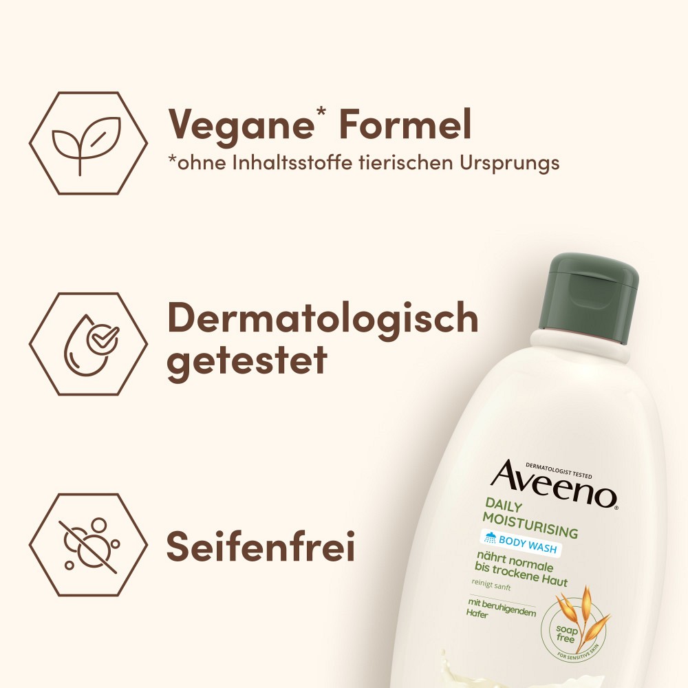 - Für normale bis trockene, empfindliche Haut – Das Aveeno Daily Moisturising Duschgel nährt normale bis trockene, empfindliche Haut