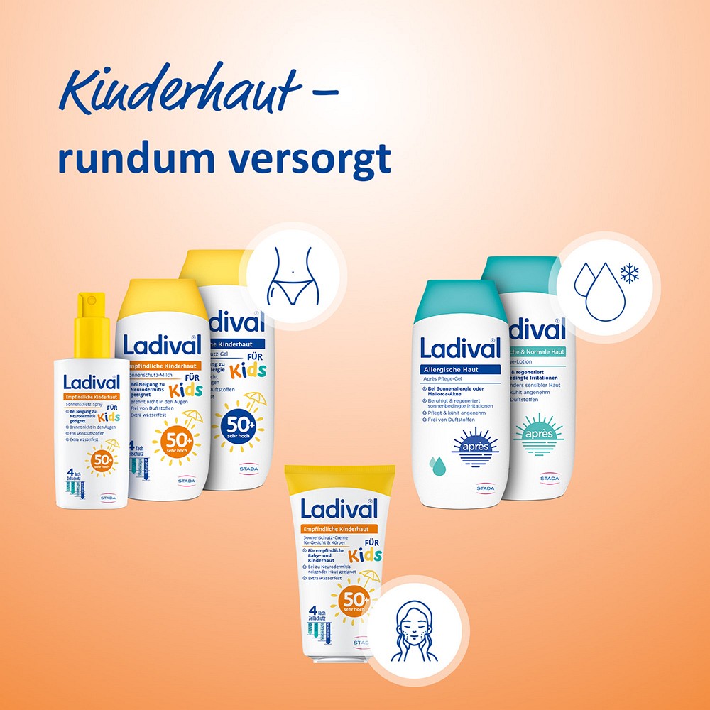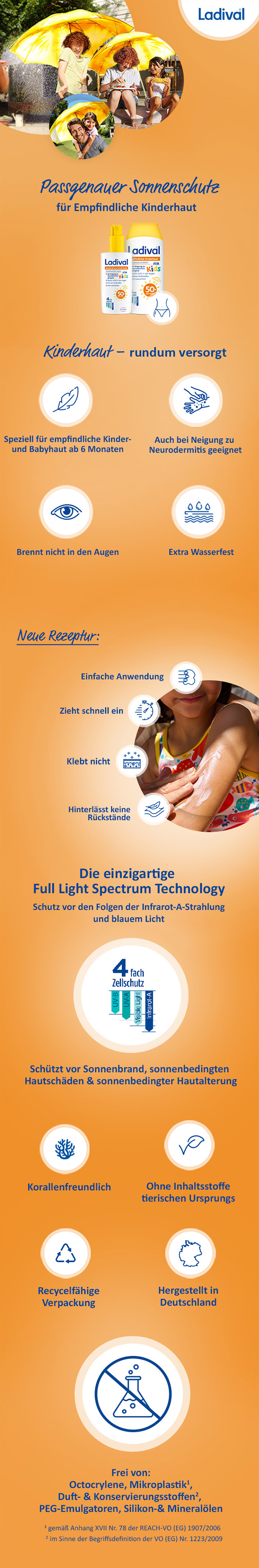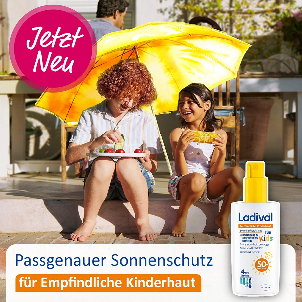 Ganzjähriger Sonnenschutz ist essenziell, da er nicht nur vor Sonnenbrand schützt, sondern auch das Risiko an Hautkrebs zu erkranken reduziert. Kinderhaut ist besonders empfindlich gegenüber schädlichen UV-Strahlen und benötigt daher besonderen Schutz – vor allem, da Kinder viel Zeit im Freien verbringen.Ladival bietet hierfür das Empfindliche Kinderhaut Sonnenschutz-Spray mit einem sehr hohen Lichtschutzfaktor von 50+, speziell formuliert für die empfindliche Haut von Kindern und Babys ab 6 Monaten.