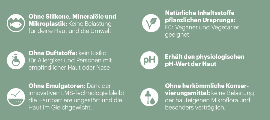 - Schnelles Einziehen ohne Fettfilm: Perfekt geeignet für ölige Haut, Mischhaut und die Anwendung als Körperpflege.