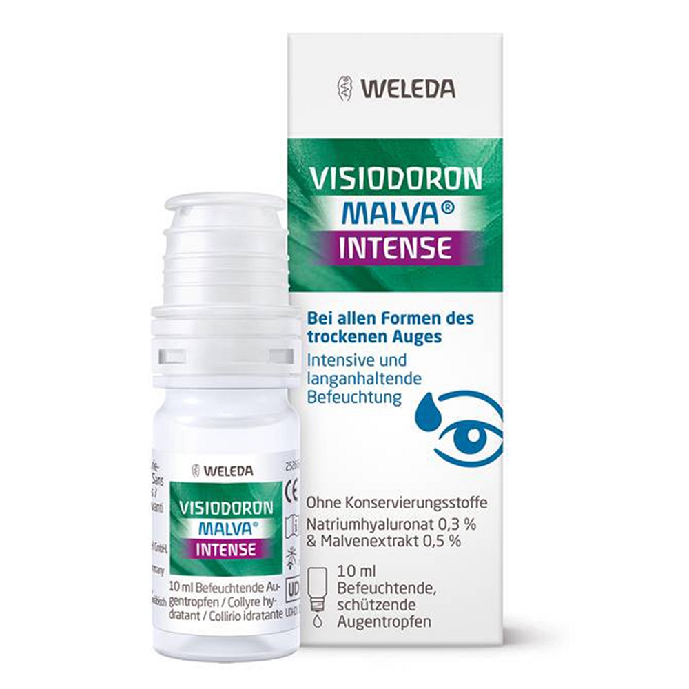 Die einzigartige Wirkstoffkombination aus Bio-Malvenextrakt und natürlicher, gentechnikfreier Hyaluronsäure stabilisiert den Tränenfilm, schützt die Augenoberfläche vor einer ungenügenden Versorgung mit Feuchtigkeit und unterstützt dadurch die Regeneration vorhandener Schädigungen. Visiodoron Malva Intense befeuchtet trockene Augen intensiv und langanhaltend.