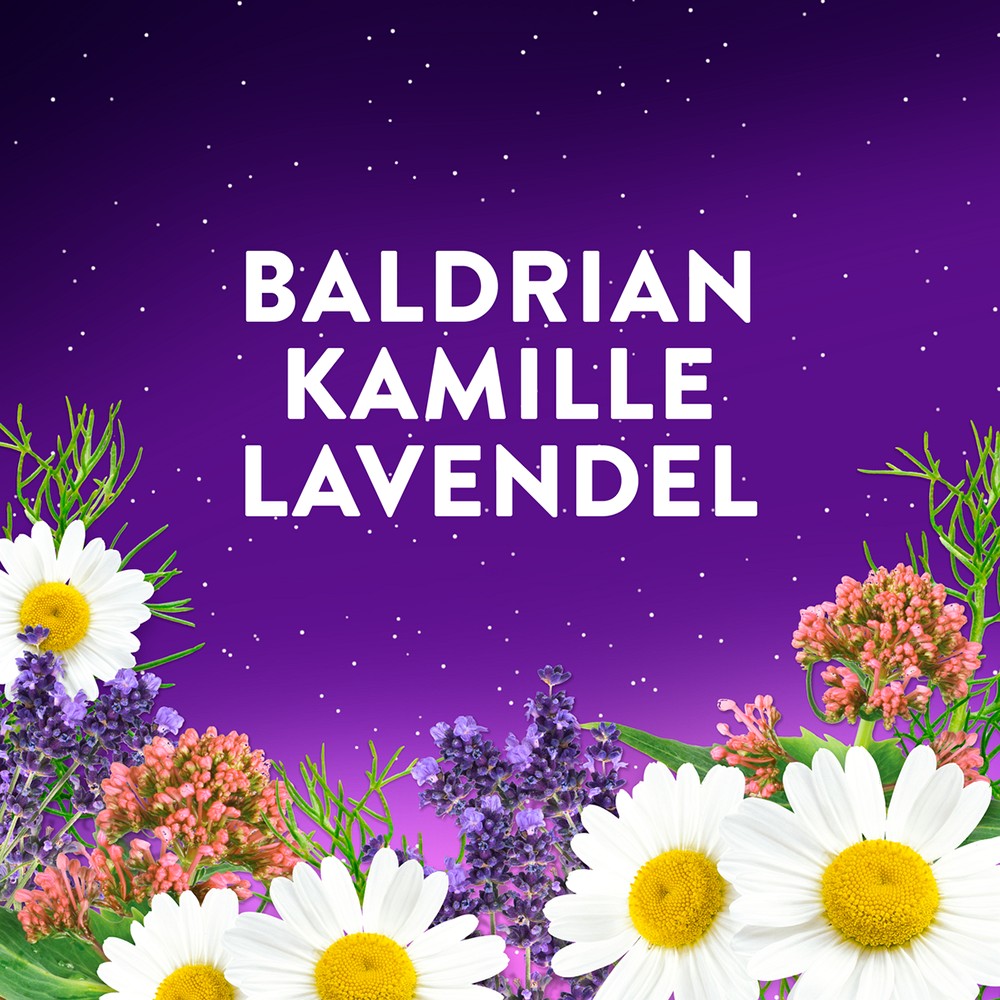 Unsere Weichgummis von Europa's Nr. 1 Schlafmarke1 haben einen natürlichen Waldfruchtgeschmack und enthalten (pro Weichgummi) 1,7 mg Melatonin, 2,8 mg Vitamin B6, 30 mg Bal-drianextrakt, 10 mg Kamillenextrakt, 10 mg Lavendelextrakt.
