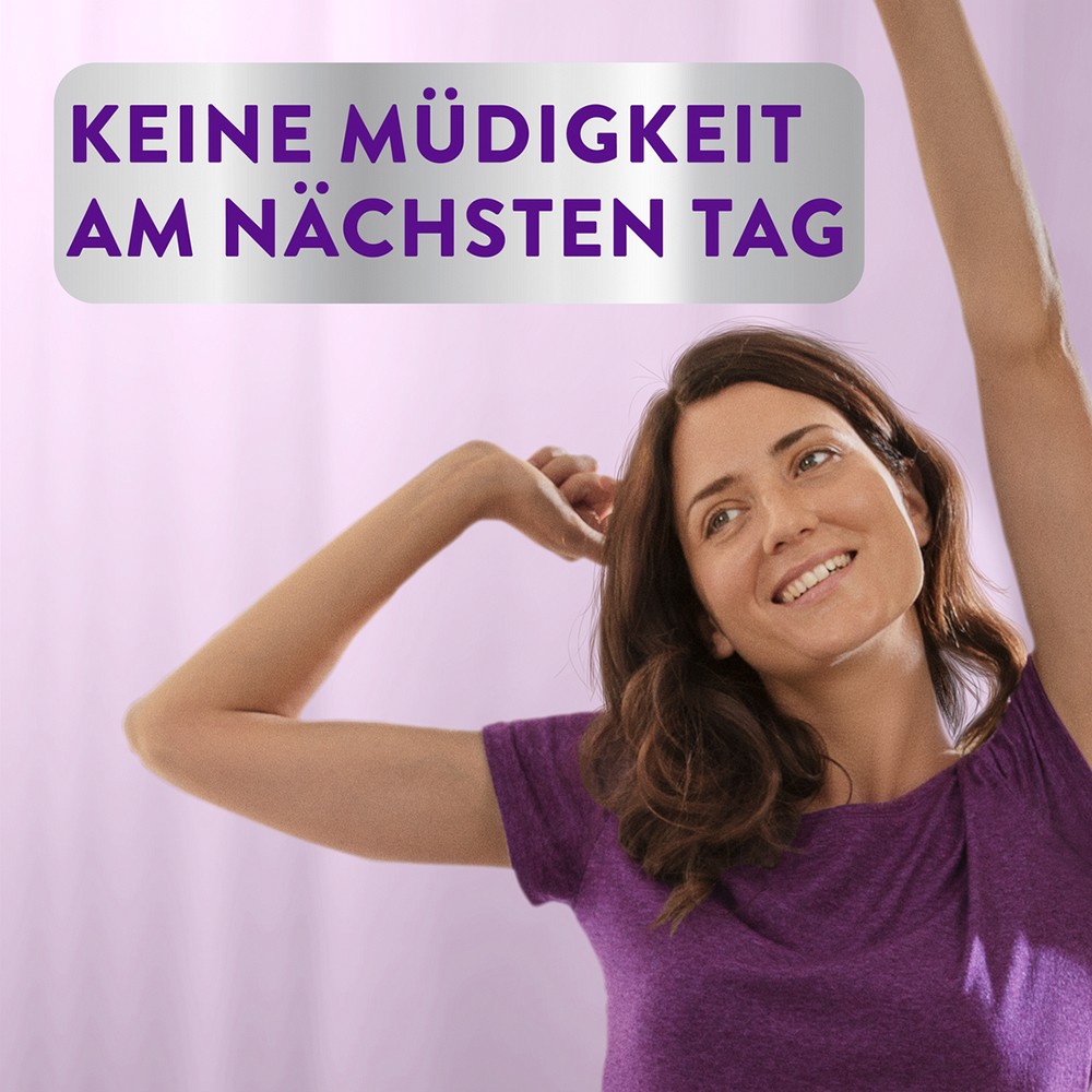 30 Minuten vor dem Zubettgehen bei Bedarf 1 Weichgummi einnehmen, die Abendroutine fortsetzen, zu Bett gehen, angenehm schneller einschlafen** und Zzzzs.