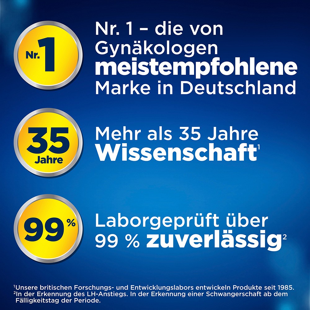 - Keine Marke ist genauer: Clearblue ist über 99 % zuverlässig in der Erkennung einer Schwangerschaft ab dem Fälligkeitstag der Periode