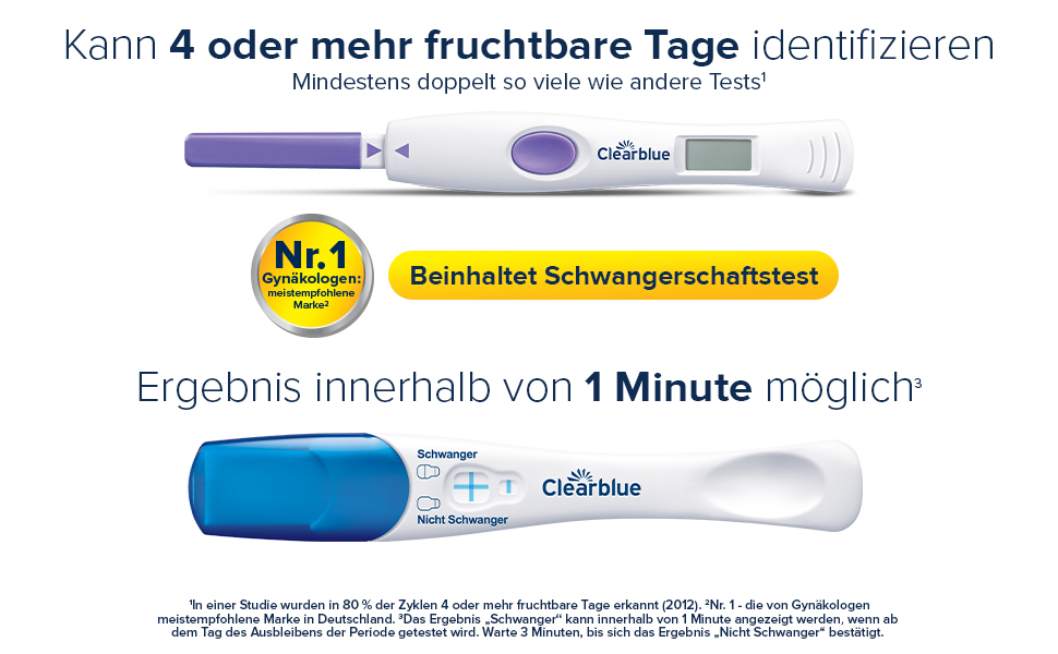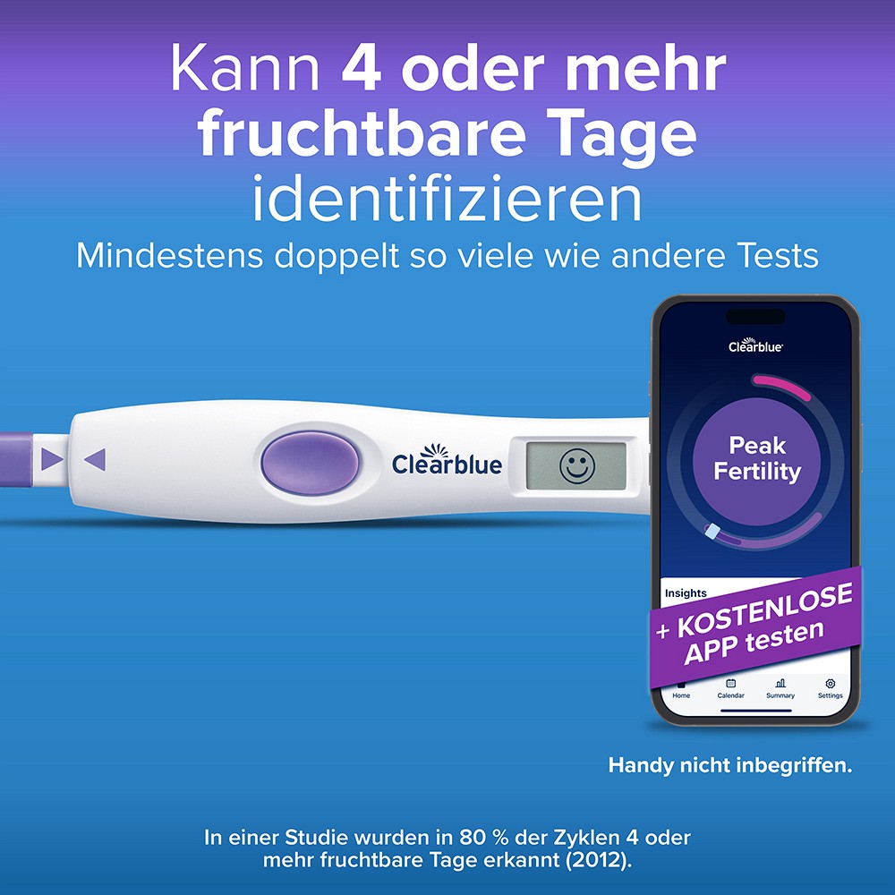 - Eindeutige Ergebnisse – An deinen fruchtbaren Tagen erscheint der einzigartige lächelnde Clearblue Smiley: Maximiere deine Chancen, schwanger zu werden, indem du an Tagen mit hoher und maximaler Fruchtbarkeit Geschlechtsverkehr hast