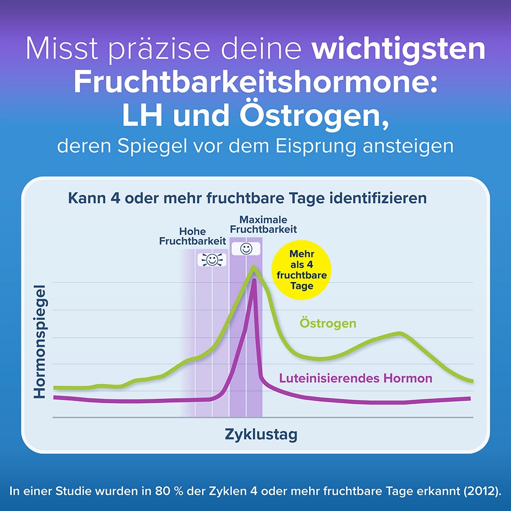(1) In einer Studie mit 87 Frauen wurden in 80 % der Zyklen anhand der tatsächlichen Zykluslänge 4 oder mehr fruchtbare Tage erkannt (2012).