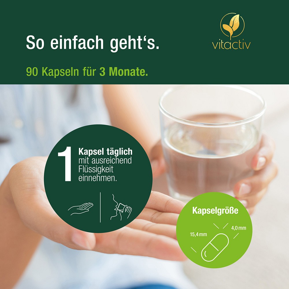 • Nur 1 kleine Kapsel pro Tag – leicht zu schlucken, kein Essiggeschmack