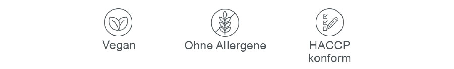 - Nach offiziellem HACCP-Konzept in Deutschland produziert (Hazard Analysis Critical Control Point). Es steht für eine Gefahrenanalyse und dient der hygienischen Sicherheit von Lebensmitteln.