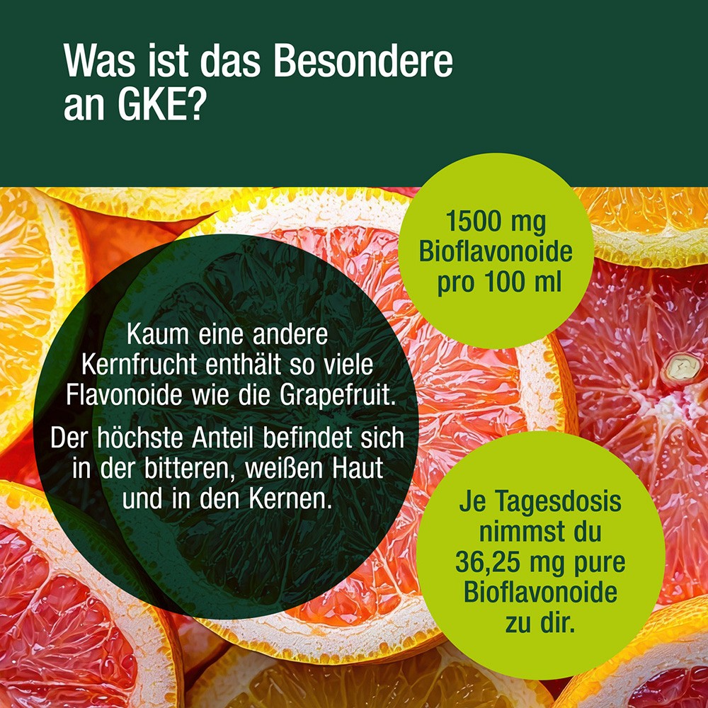 • Der erste flüssige Grapefruitkernextrakt (GKE) als Nahrungsergänzung mit hochdosierten 1500 mg Bioflavonoiden pro 100 ml