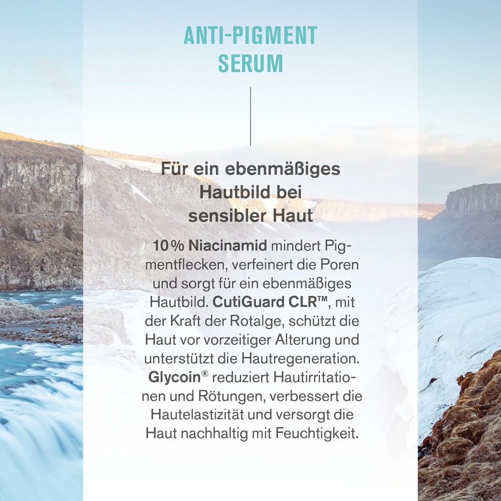 Unser Anti-Pigment Serum ist ideal für sensible Haut und sorgt für einen strahlenden Teint. Niacinamid reduziert Pigmentflecken, verfeinert Poren und stärkt deine Hautbarriere, damit sie vor äußeren Einflüssen geschützt ist. CutiGuard CLR unterstützt die Hautregeneration, trägt zu einem gleichmäßigen Hautton bei und fördert gleichzeitig den Aufbau von Kollagen.