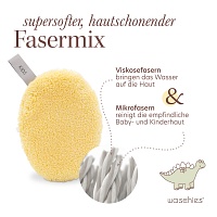 Der Fasermix besteht aus einer besonders dicken Mikrofaser, die von einer Viskosefaser ummantelt ist. In einem speziellen Webverfahren hochflorig gewebt, entsteht so eine außergewöhnlich weiche Oberfläche, die sanft zur Haut ist und gleichzeitig Essensreste, Cremes und Schmutz zuverlässig entfernt.Die Viskosefaser sorgt dafür, dass ausreichend Wasser an die Haut gelangt – für eine schonende Reinigung ohne Austrocknen oder Reizung.