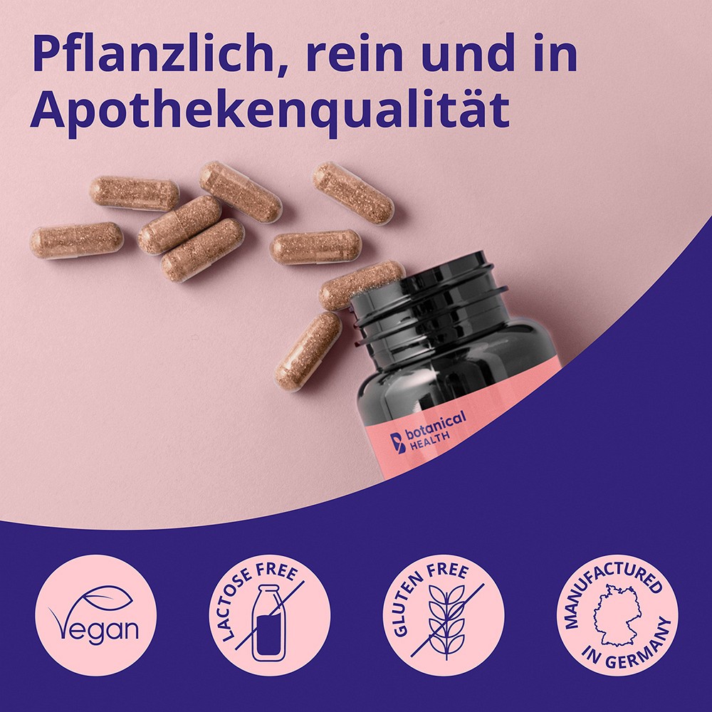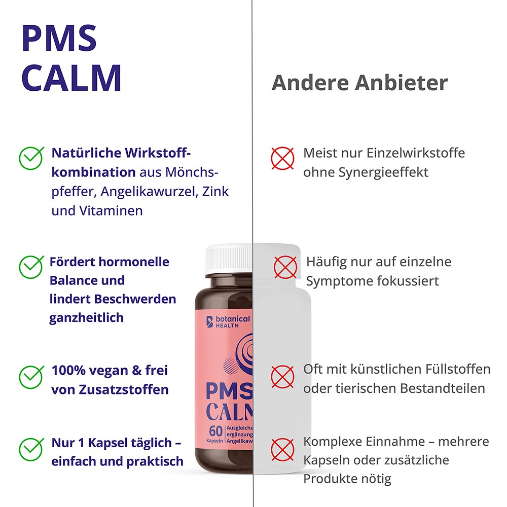 Mit PMS CALM von Botanical Health kannst Du hormonelle Schwankungen sanft ausgleichen und typische PMS-Beschwerden auf natürliche Weise angehen.