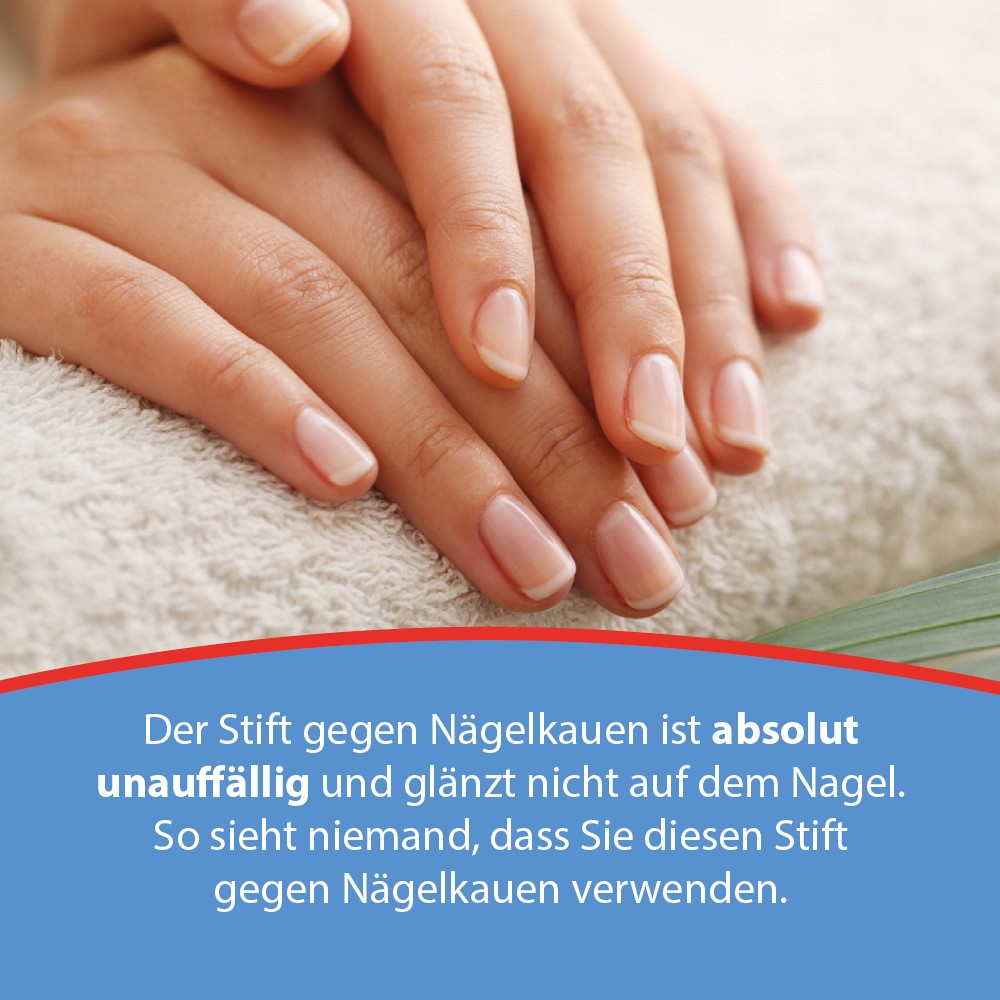 Der Acetocaustin Stift gegen Nägelkauen bietet ein effektives Mittel zur Beendigung des Nägelkauens, angereichert mit Bitrex, der bittersten Substanz weltweit, um das Kauen zu verhindern. Mit nur einer Anwendung pro Tag hilft der Stift, die Gewohnheit des Nägelkauens zu stoppen. Der Acetocaustin Stift gegen Nägelkauen wird mit dem einfach zu bedienenden Pinselstift auf den Nagel aufgetragen.Die aufgetragene Flüssigkeit ist unsichtbar und glänzt nicht. Der Acetocaustin Stift gegen Nägelkauen bietet eine zielgerichtete Anwendung, die lediglich auf den Nagelrand, die Nagelseite oder die Nagelhaut aufgetragen wird. Dank Bitrex ist eine vollflächige Anwendung auf den Nagel nicht notwendig.