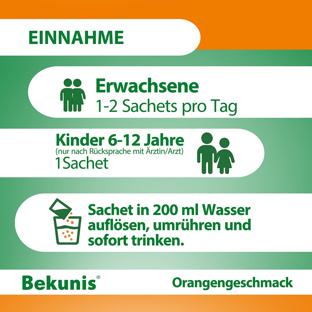 Bekunis Abführ-Komplex plus wird als praktisches Trinkgranulat in Sachets angeboten – ideal für zu Hause und unterwegs. Die Einnahme erfolgt einfach durch Auflösen eines Sachets in einem Glas Wasser.Aufgrund der guten Verträglichkeit eignet sich das Produkt sowohl für eine akute Anwendung als auch bei chronischer Verstopfung, beispielsweise in Verbindung mit Reizdarmsyndrom (IBS).