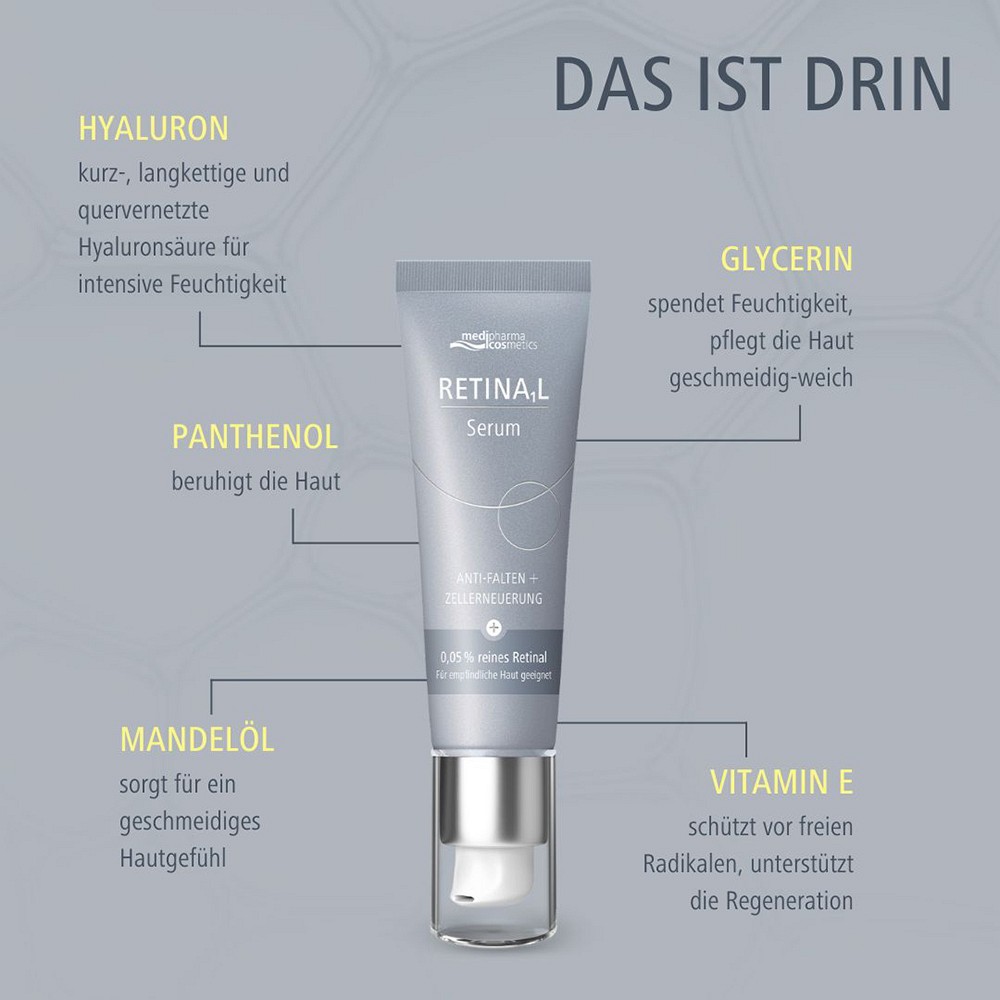 Der Inhaltsstoff Retinal unterstützt außerdem die Zellerneuerung und wirkt gezielt gegen Zeichen der Hautalterung.