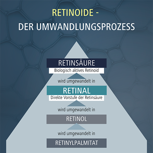 Da nur Retinsäure in der Haut biologisch wirksam ist, müssen die anderen Stoffe zuerst in Retinsäure umgewandelt werden.