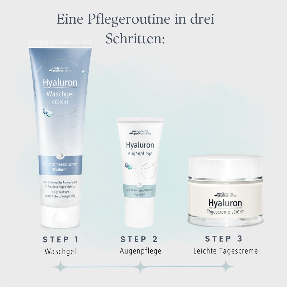 Für eine umfassende Pflegeroutine kann die Tagespflege mit der Hyaluron Augenpflege von medipharma cosmetics ergänzt werden, die sowohl morgens als auch abends angewendet werden kann.